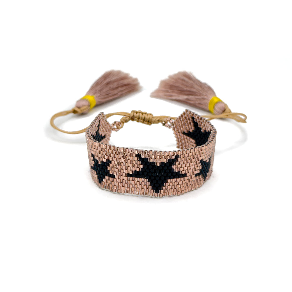 Celestial Star Beaded Bracelet with Czech Stones and Adjustable Tassels